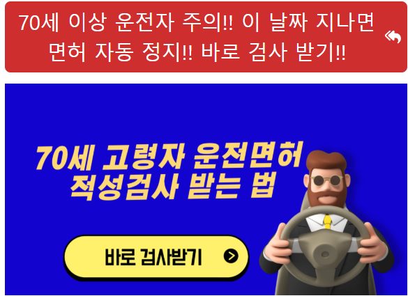 - 70세 이상은 운전면허 적성검사 의무 대상