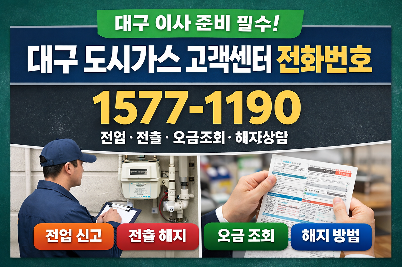 대구에 이사하거나 집을 정리할 때 가장 먼저 확인해야 하는 것이 바로 **대구 도시가스 고객센터 전화번호(전입/전출신고/요금조회/해지방법)**입니다. 전입 신고부터 전출 시 가스 해지, 요금 조회까지 한 번에 해결할 수 있기 때문에 미리 알아두면 정말 편합니다. 오늘은 실제로 많이 문의되는 내용 위주로 정리해 드릴게요 ㅎㅎㅎ